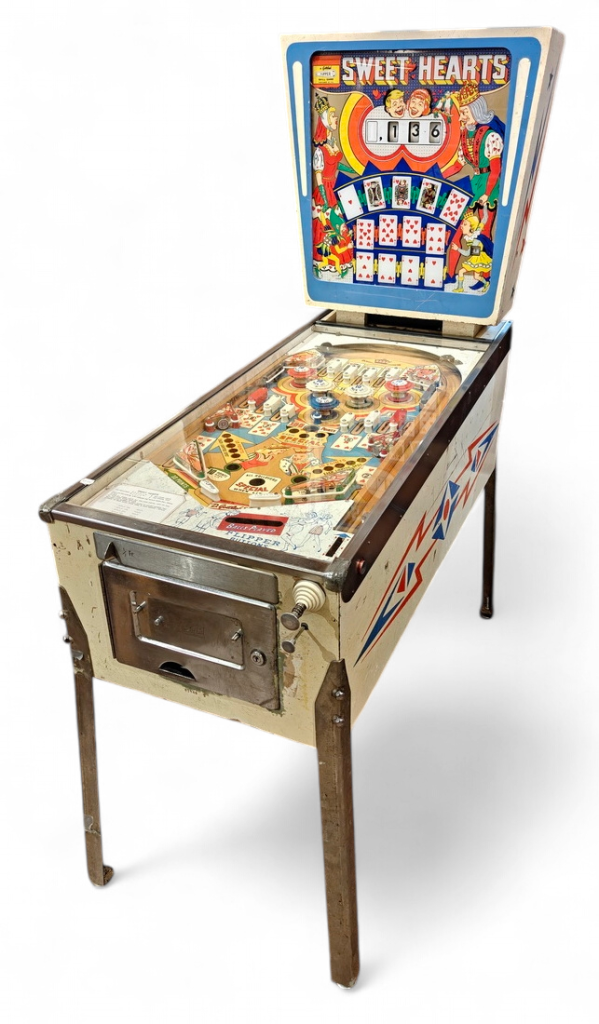 Flipperspel 1963 – Helt genomgången, servad. Bytt delar såsom kontakter, lampor, elenheter, brytare, gummisnoddar. Går att köra på nya Enkronor. Testad och fungerar. Pris: 13.500kr.