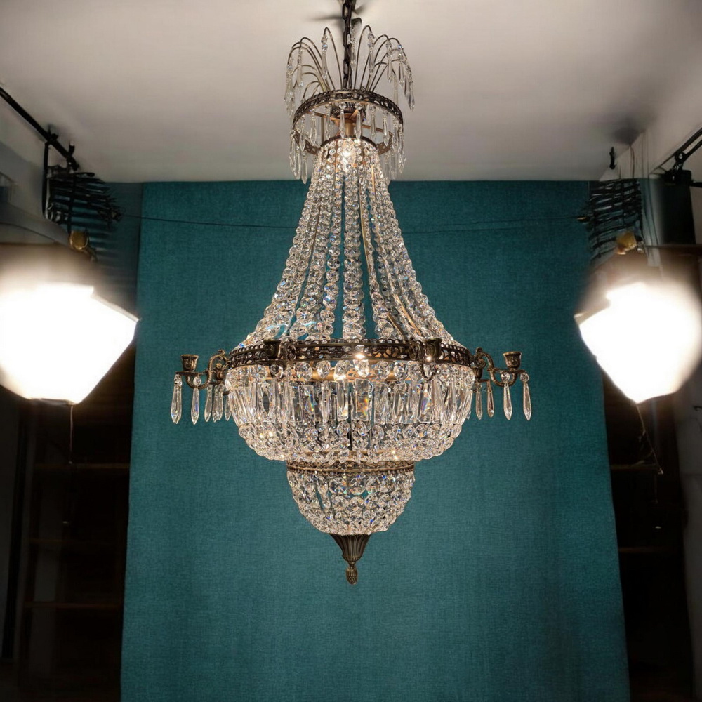 8-arm kristallkrona – Pris. 6500kr – Med nydragen el. Höjd: ca.110cm.